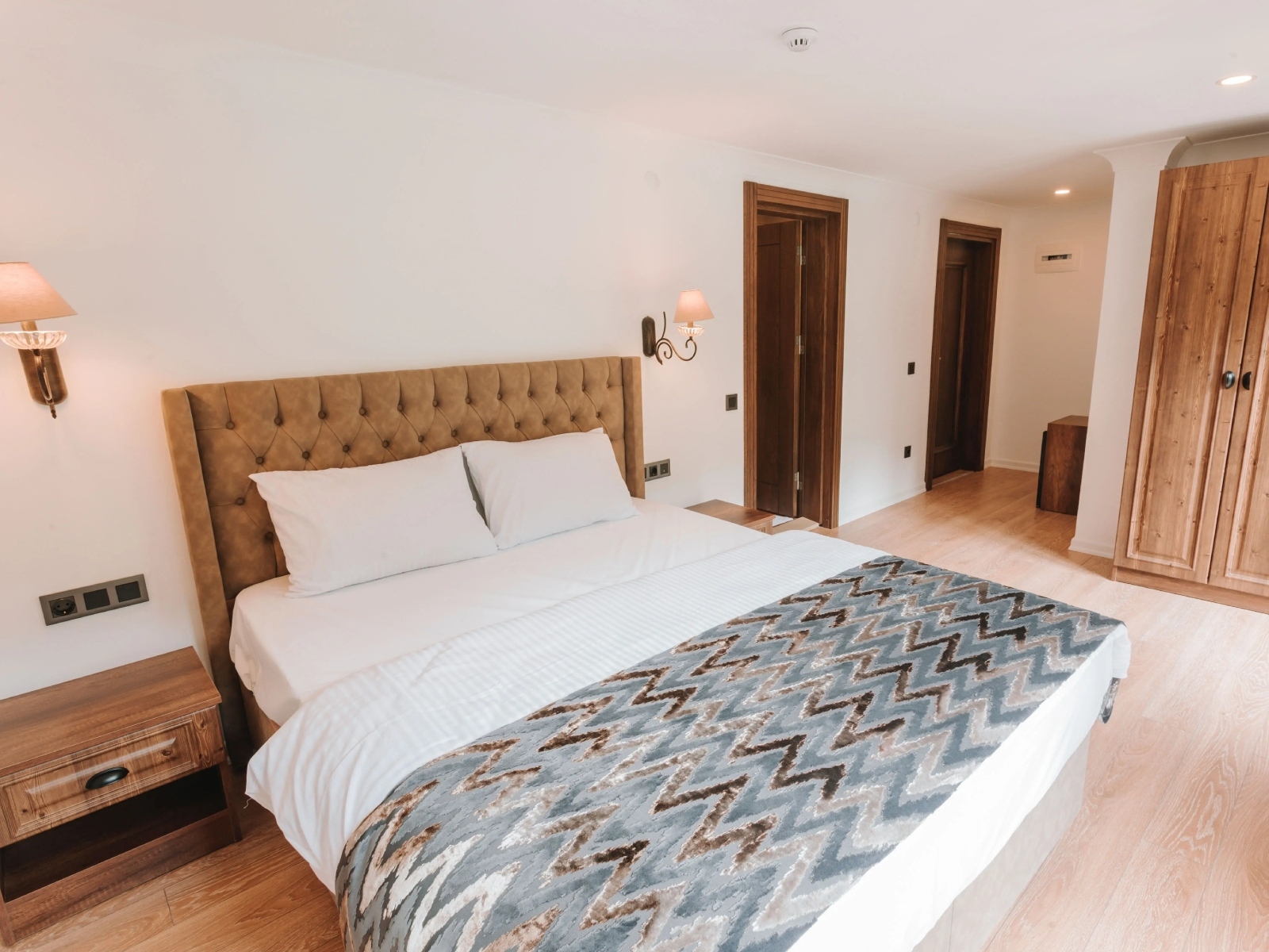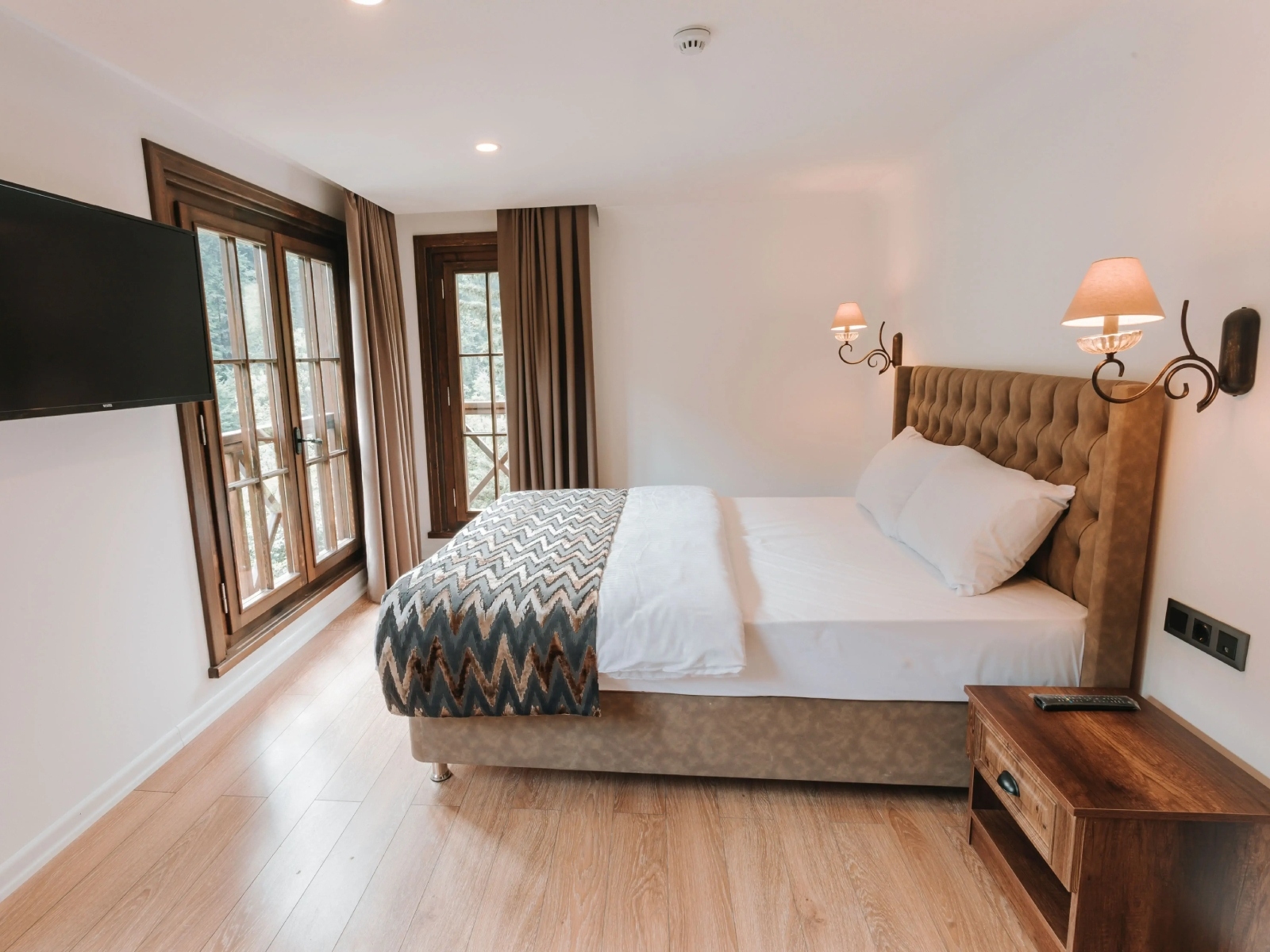Queen yataklı odamız, rahatlamanız için kusursuz ortamı sunacak şekilde doğal ahşap tonlarında dekore edilmiştir. Ücretsiz WiFi ile internete bağlanıp, HDTV’yi izleyerek yorgunluğunuzu atabilirsiniz veya duşakabin bulunan şık banyomuzda tazelenebilirsiniz. Sadece 2 kişi konaklayabilir.